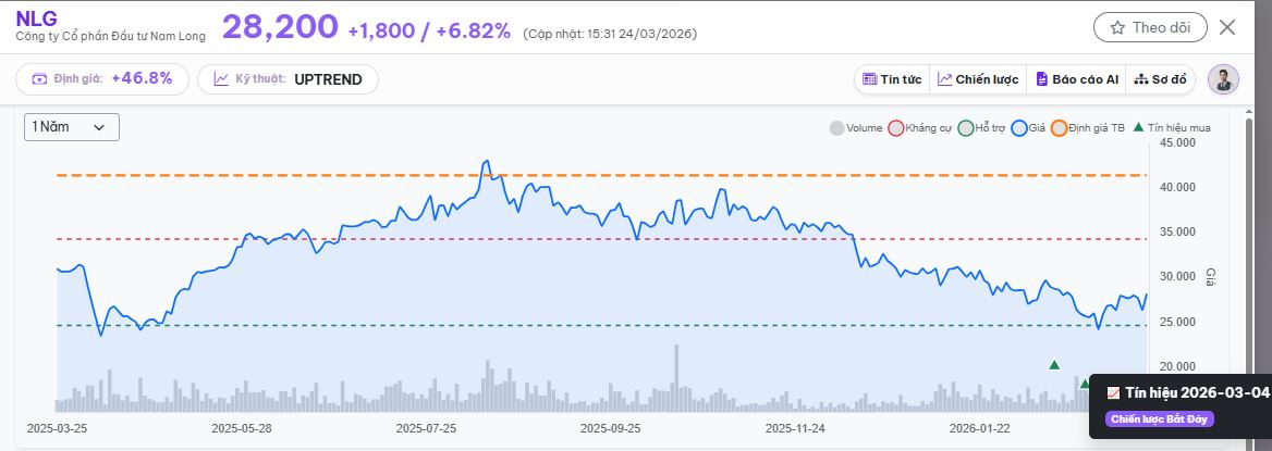 Đầu tháng 3, khi NLG tiếp tục bị bán xuống vùng 25,700đ, một tín hiệu quan trọng khác xuất hiện – tín hiệu từ chiến lược bắt đáy.